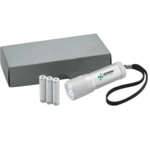 The Mars Flashlight has 9 white LED lights and a wrist strap. Simply push the button to turn the power on and off.